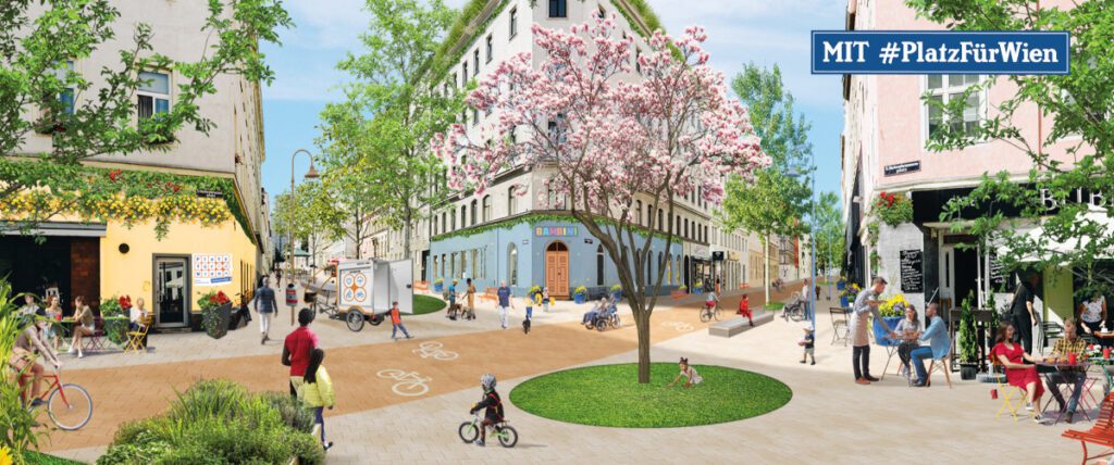 Konkrete partizipative Herausforderungen greift das Programm der selbsternannten „Aufschwungskoalition für Wien“ beispielsweise für die Wallensteinstraße auf: Sie soll „auf Grundlage der bereits erfolgten Bürger:innenbefragung“ umgestaltet werden. Da muss die lokale SPÖ über ihren Schatten springen, denn die befragte Bevölkerung will sichere Radinfrastruktur statt Parkplätze. Ein weiterer Beteiligungsschwerpunkt des Koalitionsprogramms liegt bei Kindern und Jugendlichen, es wird die „Umgestaltung eines Platzes, bei der Kinder und Jugendliche von Beginn an mitgestalten und mitplanen“ versprochen. Nur ein Platz für ganz Wien? Viel mehr davon!