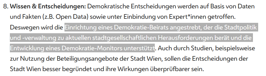 Im selben Kapitel 4.1 werden Reformen des Petitionsrechts und Bürger:innen-Räte angeführt. Aus dem Konjunktiv müssen noch Taten werden.